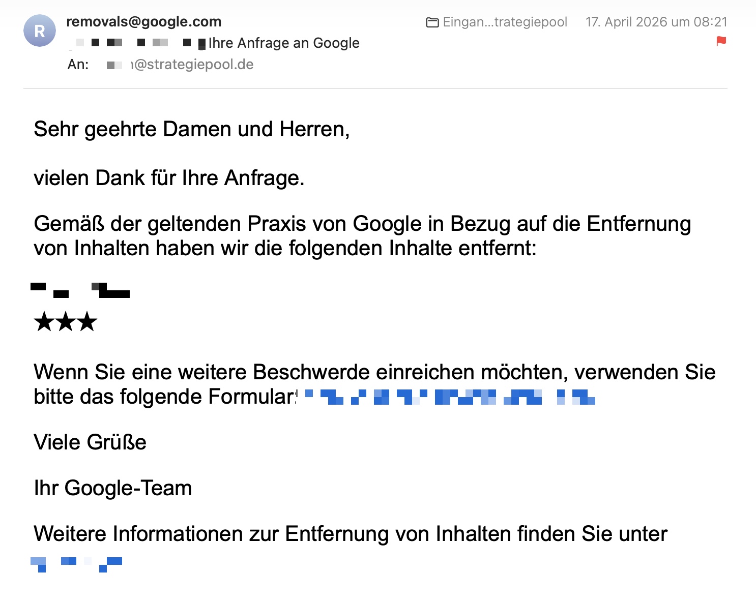 - Eine formale Beanstandung bei Google oder anderen Plattformbetreibern kann sinnvoll sein.